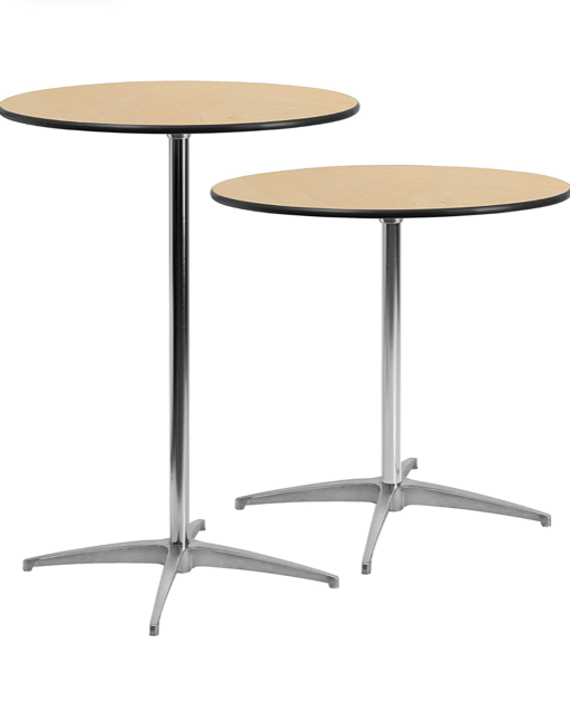 30” diameter tabletop with height options of 30” or 42”